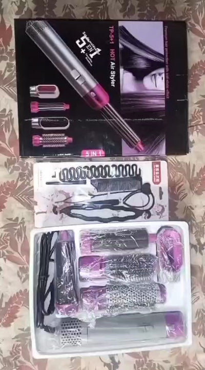 High Quality 5 In 1 Hair Styler Is The Ultimate All-In-One Hair Care Tool Designed To Deliver Salon-Quality Results At Home. Made From Premium ABS And Aluminum Alloy, It Features Advanced Negative Ion Technology And A Ceramic Coating To Reduce Frizz, Enhance Shine, And Protect Hair From Heat Damage.